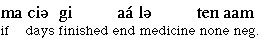 [About the death of Bilberry's son]. Apparently after Nggwun his wife had gone to join him - his first wife. He'd had BIG cough =pneumonia? for a long time. Now a new illness has entered - AIDS?