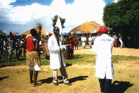 A 'nurse' at a guest performance of the Masanta Kalela Team on Chishi