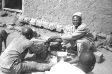 The widower is treated - here lumps of porridge are held to his lips to taste |