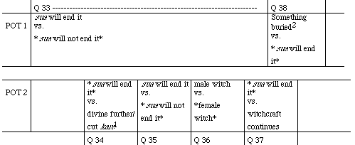 A straightforward yes/no response was sought. Another pot (Pot 2) was asked a similar question (Q 34) before the response was obtained from Q 33. The response to Q 34 was taken to advocate the use of sua, as opposed to other sorts of treatments. This was immediately followed by Q 35 which repeated Q 33. The response to Q 35 was that sua would not end the problem. This is a flat contradiction to Q 34. The problem was then assumed to be one of witchcraft. In response to this Q36 sought to identify the sex of the witch. The divination was taken to have identified the witch as female. The response to Q 36 was understood to be identical with an earlier diagnosis of 'problems among the women in Wong's house' (Q 26 and Q 29). There had in fact been a long-standing quarrel between Wong's wife and his classificatory sister about the usufruct of a field. Disputes over land tenure are typical of cases in which sua-oaths are taken. The parties to the dispute swear that, although they may be quarrelling, they bear no malice and will not seek to win their case through witchcraft, for example by causing illness among the children of the other litigant. The identification of the female witches as being those women embroiled in that dispute was assumed, and therefore not tested further by divination. This resolved the dilemma posed by the contradiction. Once the diviners are assured that the witchcraft referred to is only that connected with this quarrel, then sua becomes an appropriate and sufficient course of action. When that reassurance has been given they can return to the previous line of questioning. The earlier question was then repeated in a modified form: will sua end it, or is there other witchcraft to be dealt with, for example: in the form of buried treatments which remain active until discovered and destroyed (Q 37)? After putting this question the response to Q 33 was sought by inspecting the pot. The answer found was 'sua will not solve the problem'. This was immediately pursued in the light of the question which had just been put (Q 37), as to whether any witchcraft was to be dealt with. The diviners understood this to indicate that there might be further witchcraft. Hence Q 38 draws the distinction between buried witchcraft substances and the ending of the affair by sua. The responses to both Q 37 and Q 38 indicated that performance of the sua rite was the appropriate action to be taken. Thus a believable, because consistent, result was obtained.