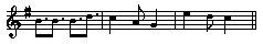 Song 42 (D-mode) follows exactly the tshikona pattern (see Figure 2). Contrasting tonality is achieved by moving towards the final (D) from its secondary and primary companions (A and G) respectively. The basic tonal pattern is elaborated by passing notes: thus A G F ED / G F E D. It is interesting that both this song and Number 25 (Figure 8), which coincide exactly with the tshikona pattern, are accompanied by speech interludes, which the novices declaim in stilted fashion. By adding one extra tone as harmony, some singers perform Number 42 in the A-mode. Other songs with markedly descending melodies which follow the instrumental model are Numbers 39 (D-mode), 35 and 55 (G-mode), and 61 (E-mode). The descent of the response from F to G in Song 39 might suggest that the F-mode is being used; but call and response overlap, and the final (D) is emphasised by an emphatic A! in both call and response sections. In Song 55 the descending mode is divided between call and response in the proportion 3:4, exactly as in the tshikona pattern, and in Songs 36 and 61 the response begins again on the tonic (also as in tshikona), but descends more rapidly towards the leading note. Although only five tones are used in Song 61, it is not based on a pentatonic mode: the tones B and G are omitted to accommodate the low speech-tones of dumbula and at the same time satisfy tonal/harmonic requirements. If the melody had been based on a Venda pentatonic mode, the tone G would have been used instead of F. It should now be apparent, as I have said at the beginning of this paper, that the most objective analysis of the tonal organisation of a melody may be achieved only by thorough immersion in its musical system and its cultural antecedents. A most dramatic example of this is provided by Song 53 (see Figure 11), which at first seems to be in the C-mode and to follow the rule of progression from final (C) to leading note (D). However, two difficulties arise: the full C-mode is rare in Venda music because of the tritone chord implicit in its second descending degree, and the pause on E requires explanation. If we compare the melody with tshikona in Figure 10 (above), it fits the pattern note for note, from the third chord of the first bar to the fourth of the second. If we apply to the melody the principle of tshikona tonality, E becomes the leading note and D the tonic/final, and the melody is in the D- and not the C-mode. This is, therefore, a transformation, a retrograde version of the process whereby call and response move away from the leading note and final: in this case both call and response begin with passing notes and move towards the leading note and final respectively. Furthermore, the transformation extends also to the form of the piece: the call is long and the response is short. As if to emphasise further the fact that C is a passing note and D is the tonic, the clap or drumbeat on D is accented and those on C are often omitted.